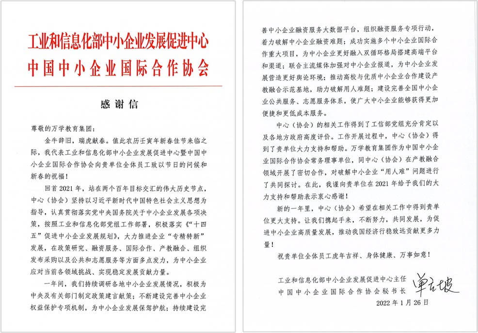 喜讯 | 教育部高校学生司给完美对战平台集团和万学高管颁发了重磅感谢状